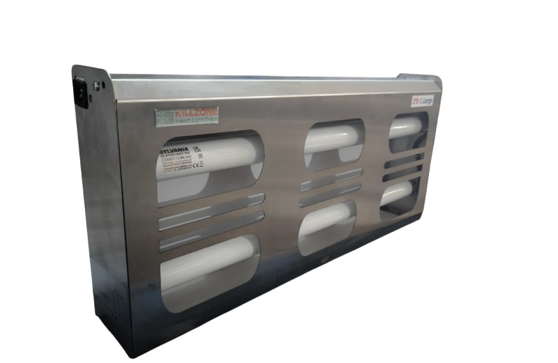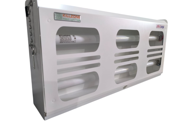 Killzone FROGGER 60, 120–200 m² etki alanına sahip, 2x18W T8 UV-A lambalı profesyonel duvar tipi sinek yakalama cihazıdır. Yapışkan levhalı hijyenik sistemi sayesinde sinekleri parçalamadan yakalar, gıda üretim ve endüstriyel alanlarda güvenli kullanım sağlar. CE uygunluklu, biyosidal bildirimli ve paslanmaz çelik/DKP gövde seçenekleriyle güçlü ve uzun ömürlü bir çözümdür.
